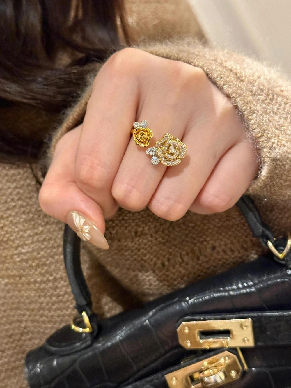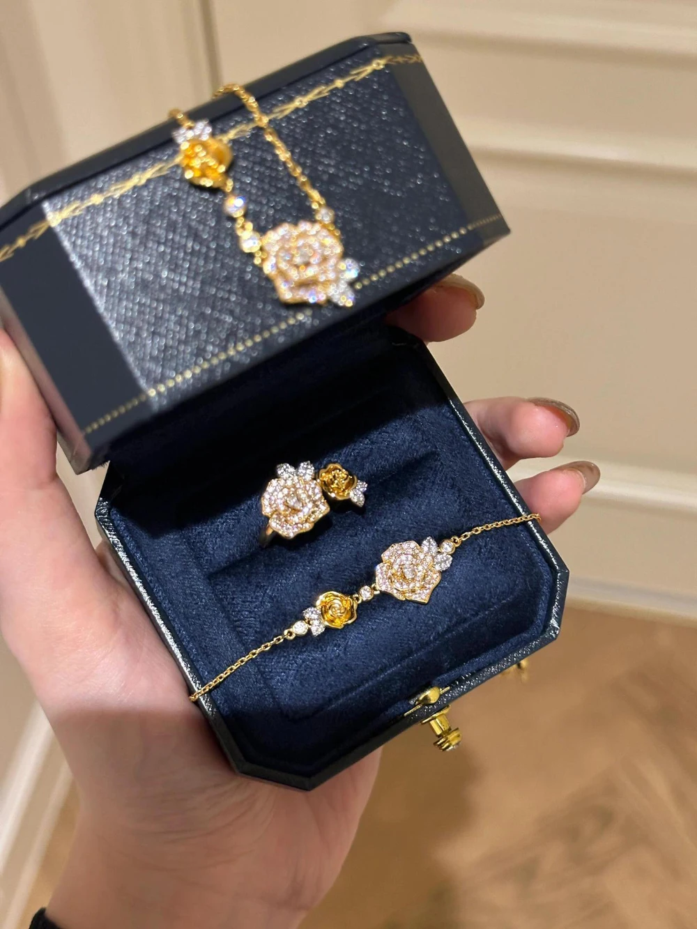 Romantic Sparkling Yellow Rose flower jewelry sets Luxury Exquisite Wedding Engagement inlay Diamond Bracelet Necklace Ring Ewkiki